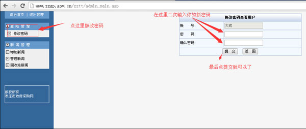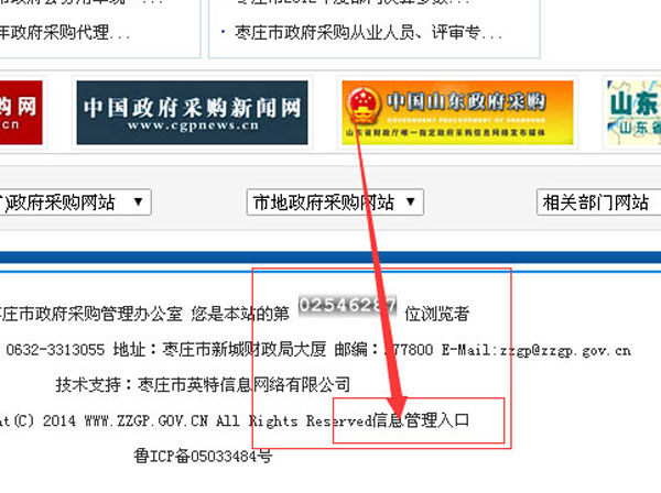 拉到網(wǎng)站的底部,找到信息管理入口點擊進入;蛑苯哟蜷_:http://www.zzgp.gov.cn/zztt/這個地址就可以進入后臺